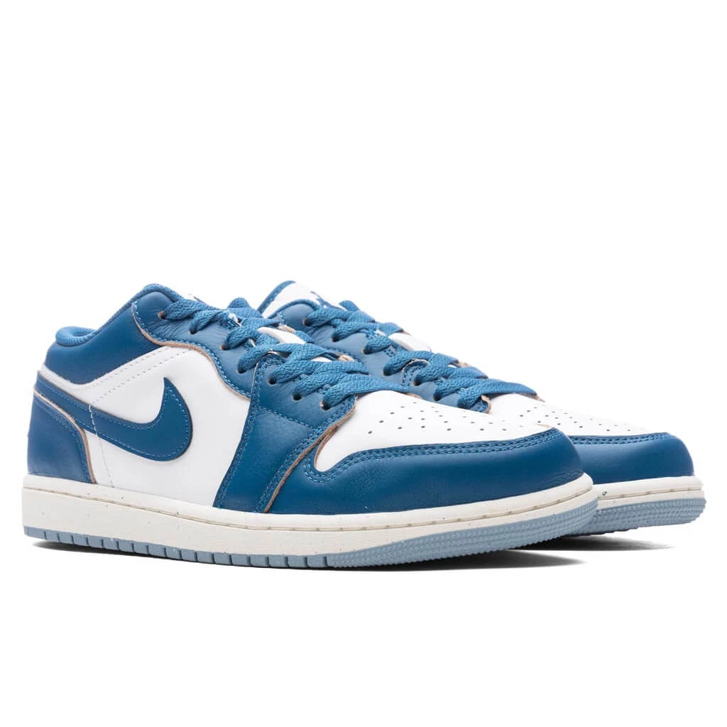 The Jordan Brand continues its legacy with the Air Jordan 1 Low SE seen in ‘Industrial Blue’ Featuring a white leather base, the silhouette features bold red overlays. Jumpman branding appears at the tongue and at the heel tab, while the rubber outsole emphasizes a durable component.