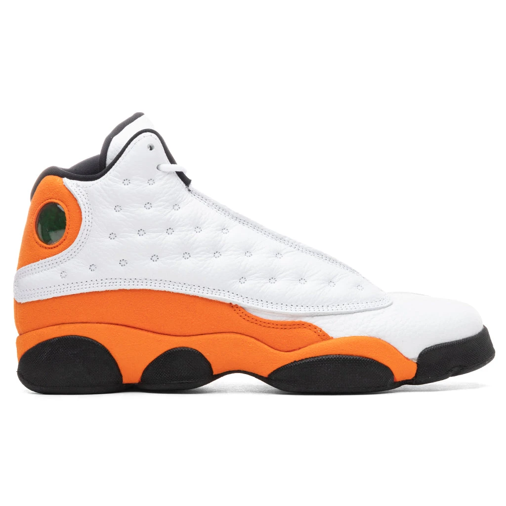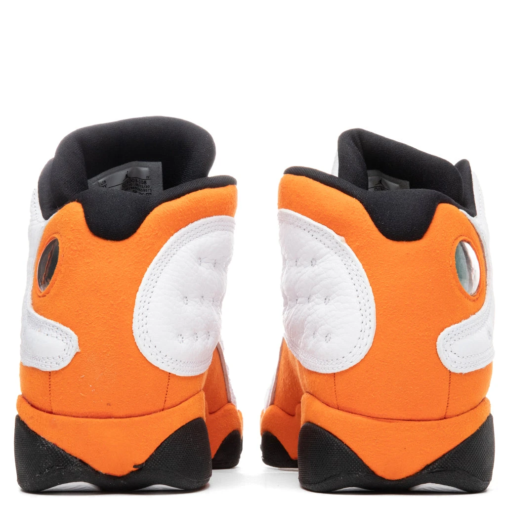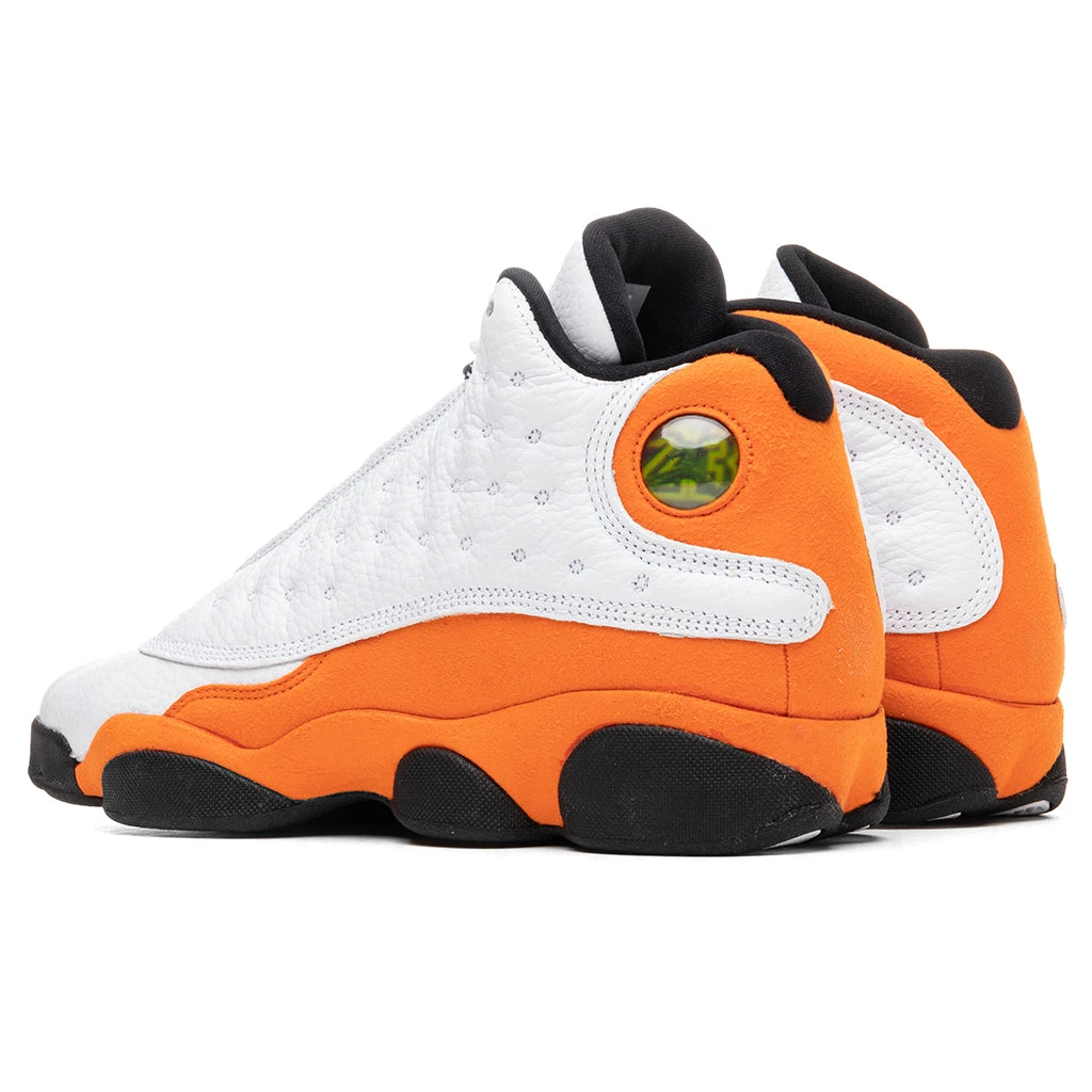 The Air Jordan 13 Retro introduces in its latest colorway, ‘Starfish,’ featuring suede overlays and leather upper. The silhouette nods to the Air Jordan 1 “Shattered Backboard,” utilizing the same colorway throughout. An embroidered Jumpman and iconic Jordan #23 emblem are displayed, coinciding with the original model. Classic AJ13 quilted leather surrounds the base and Nike’s Air technology is provided for a comfortable experience.