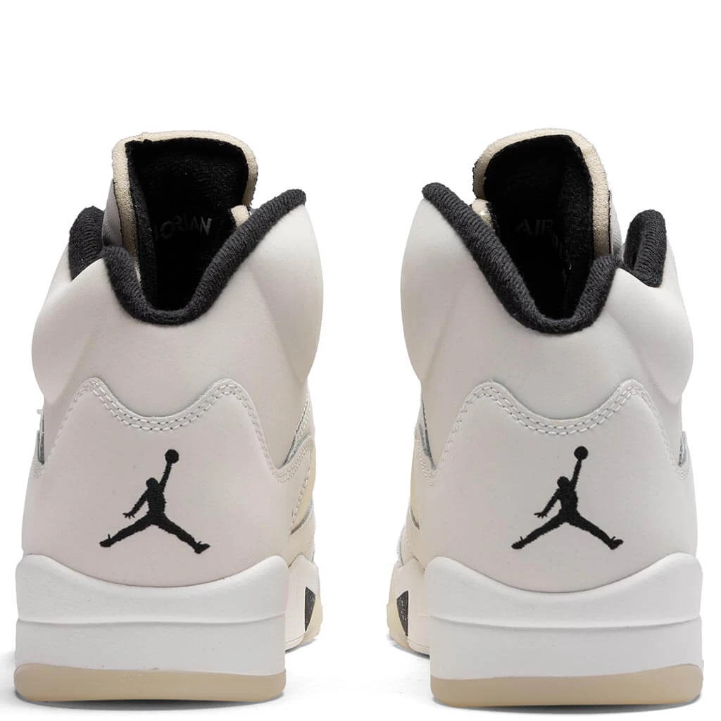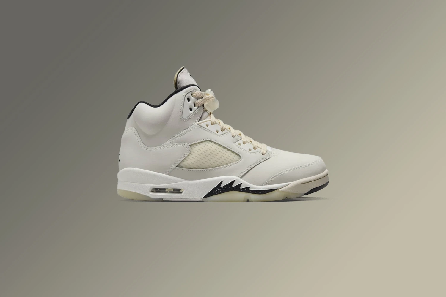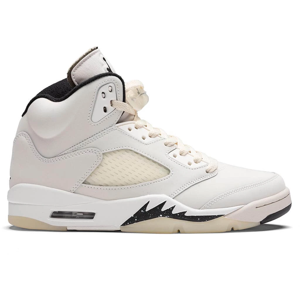 This Air Jordan 5 SE features a subtly elegant color scheme, dominated by light, neutral shades. The suede upper is fully decked in Sail hues, harmoniously paired with tonal accents. Pops of black are thoughtfully applied to the midsole, lace toggle, Jumpman logo, and again on the lace toggle, offering a tasteful contrast to the overall design.