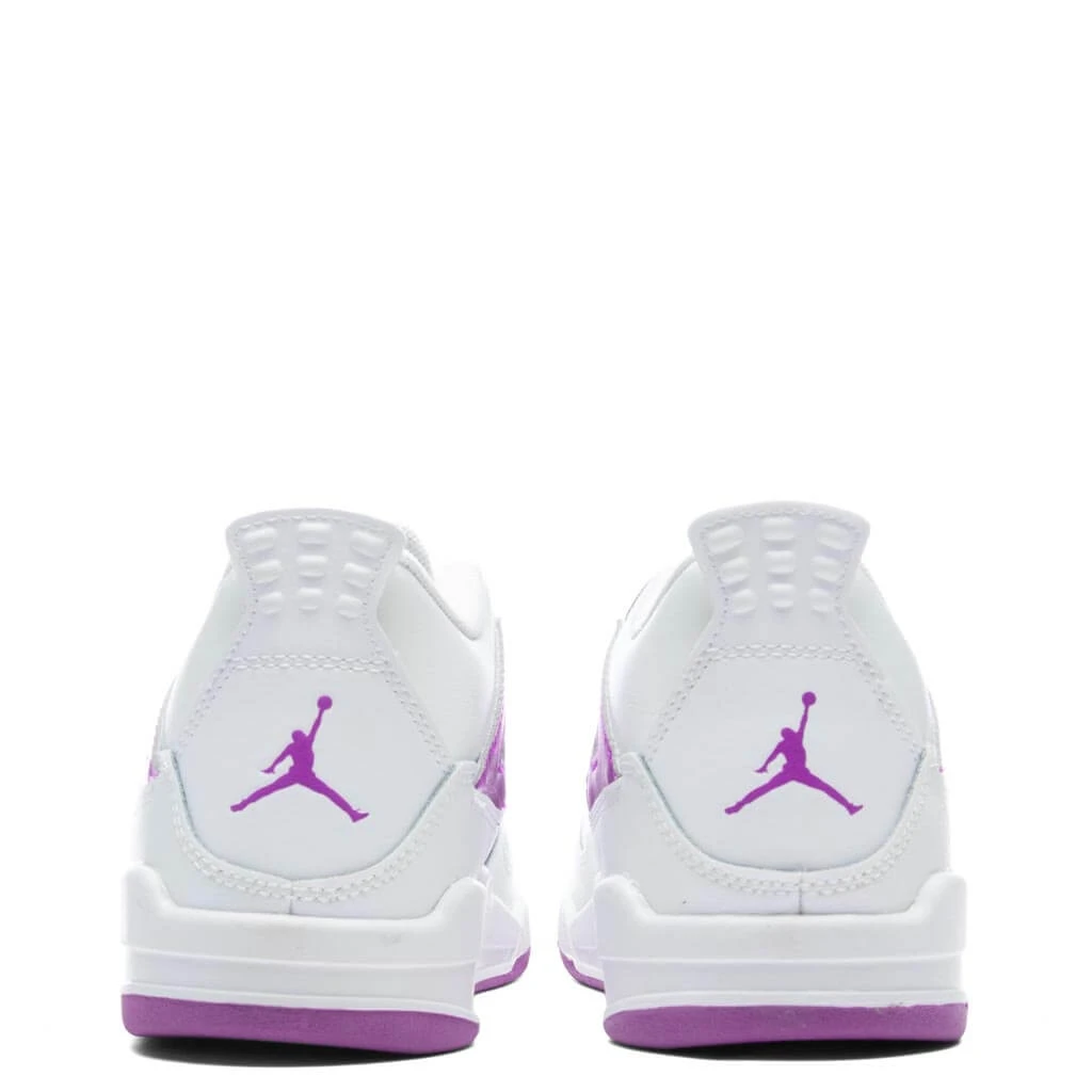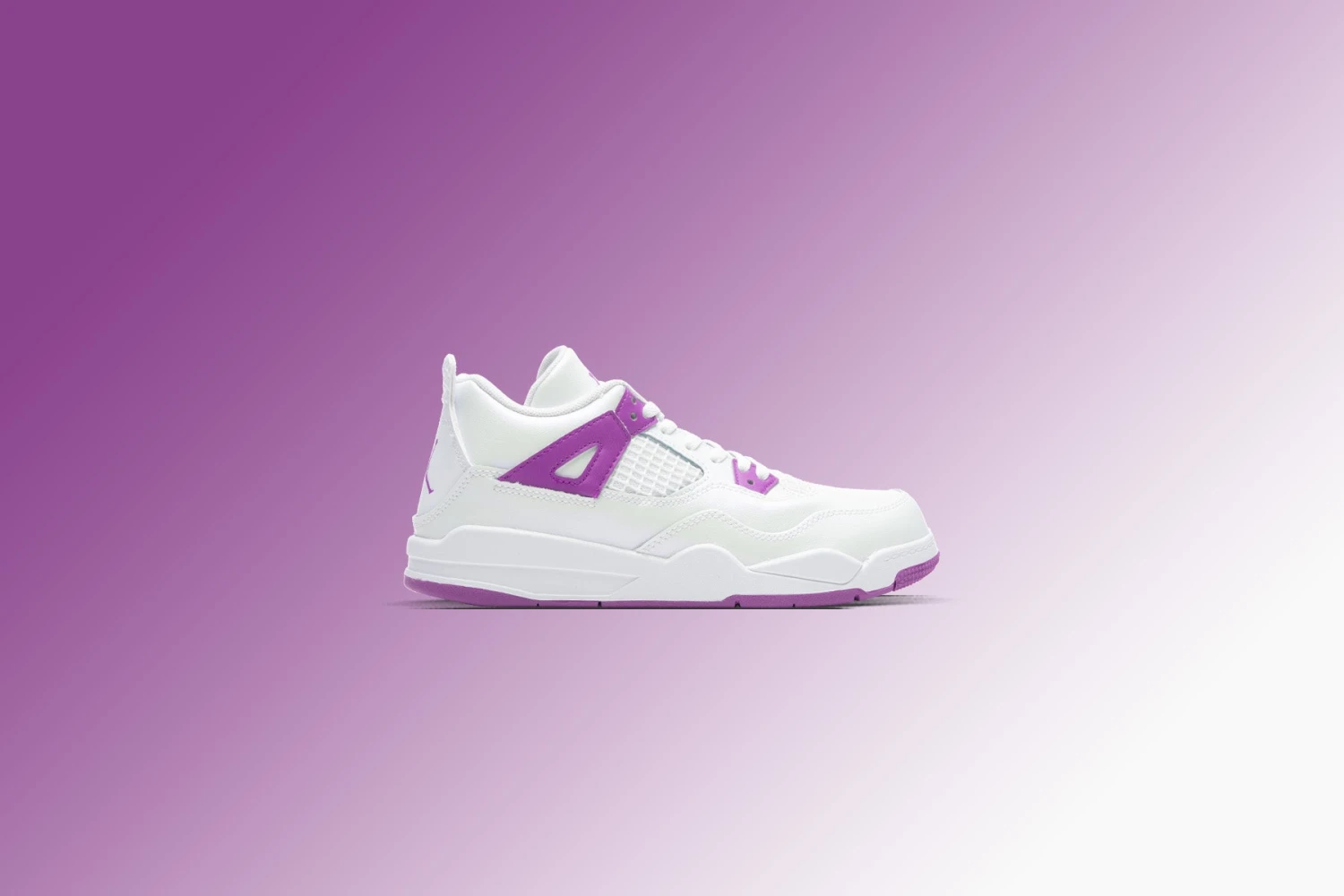 Embrace vibrant style with the Air Jordan 4 PS “Hyper Violet”. This sneaker features a clean white leather base with mesh netting, highlighted by bold hyper violet accents on the Jumpman branding, eyelet tabs, and tongue lining. The dynamic outsole adds an energetic vibe, while Nike Air cushioning in the sole provides enhanced comfort and impact protection. The Air Jordan 4 PS “Hyper Violet” combines standout style with performance, making it perfect for those looking to make a statement.